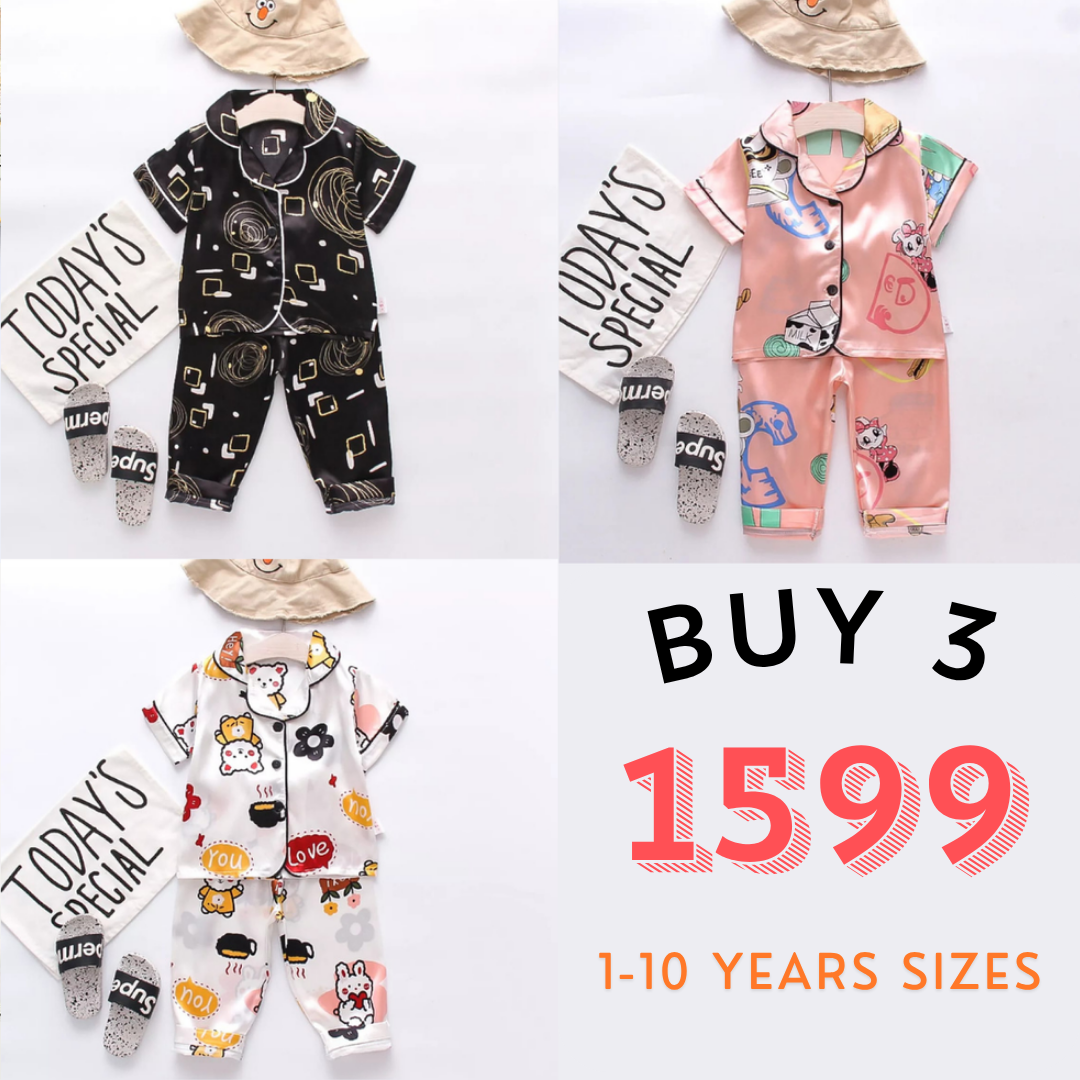 3 NIGHT SUITS COMBO FOR BOYS AND GIRLS (PRINTED DESIGN BLAKE PEACH WHITE)