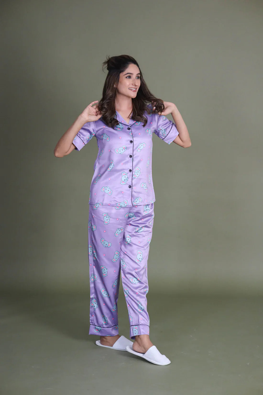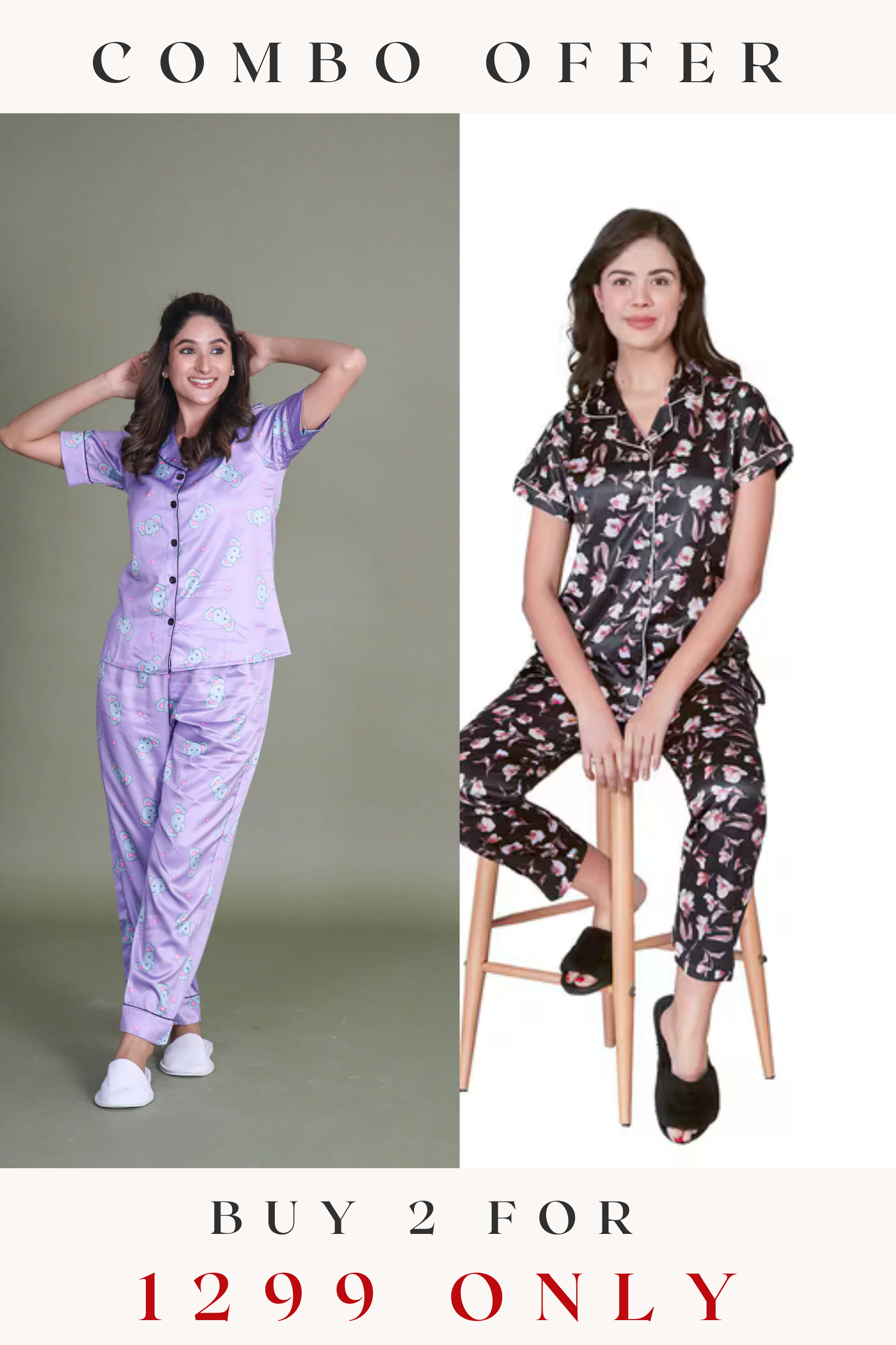 COMBO OF 2 Night Wear Satin Charcoal Lilac Color suits