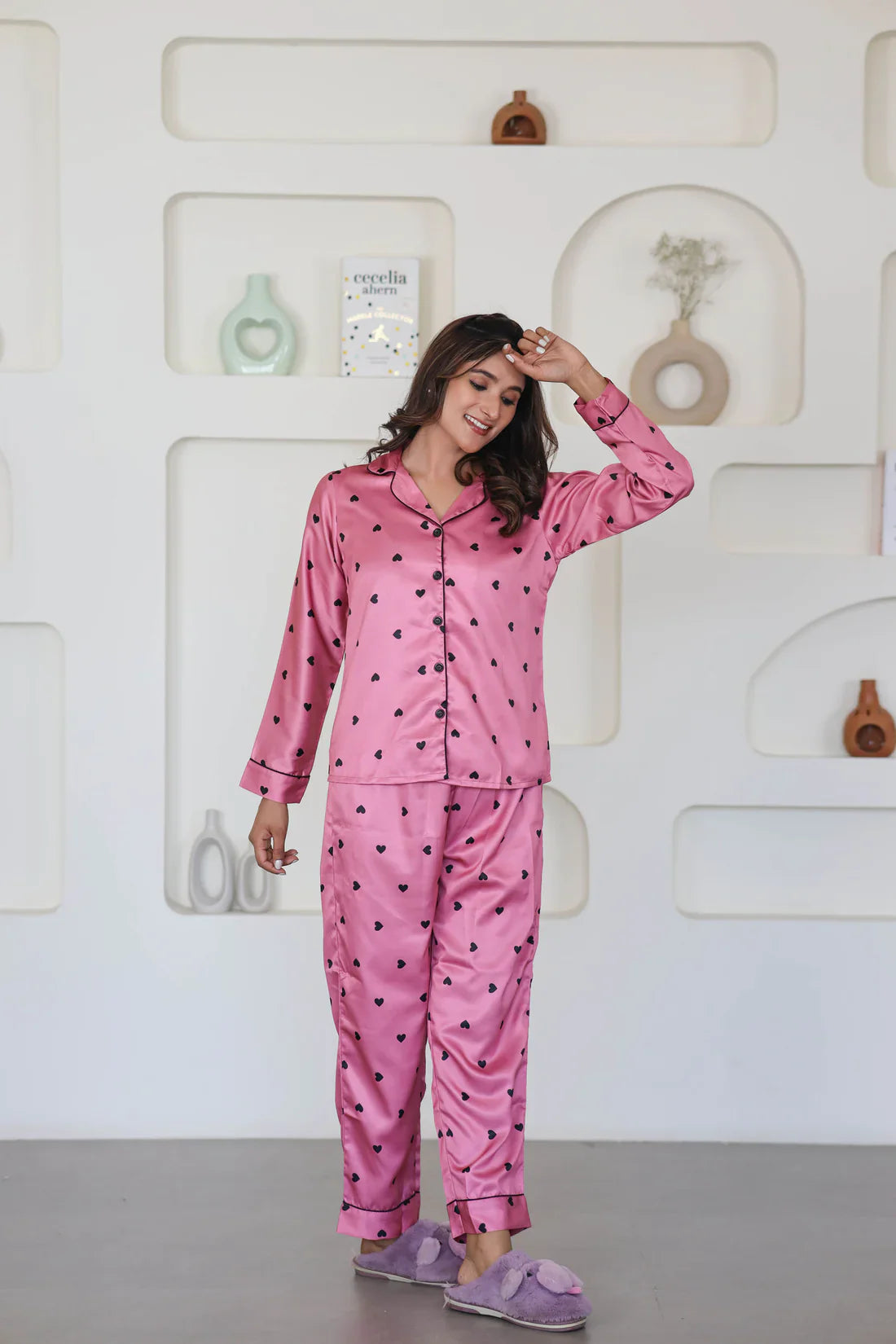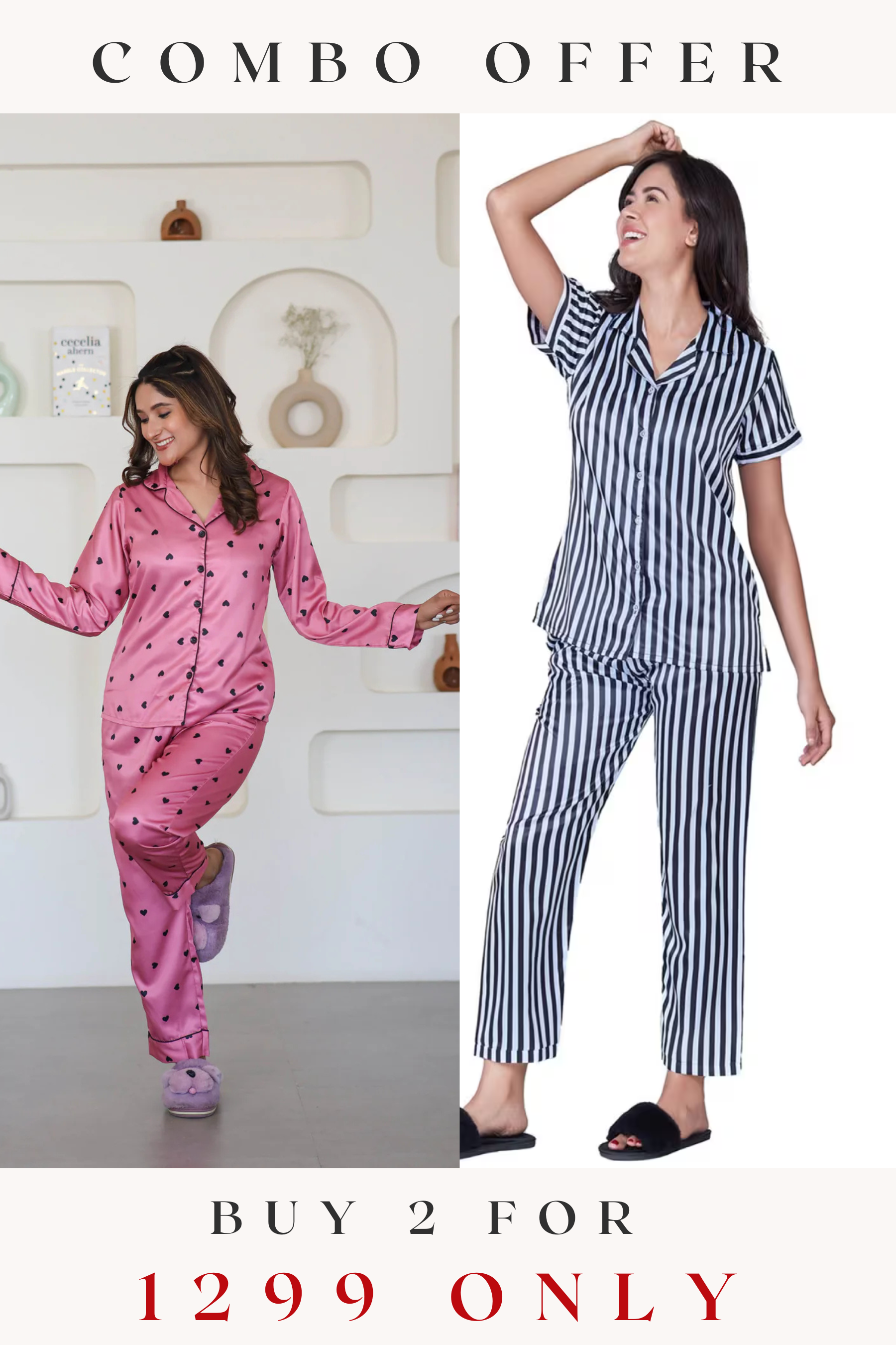 COMBO OF 2 Night Wear Satin Rose Gold Black Color suits
