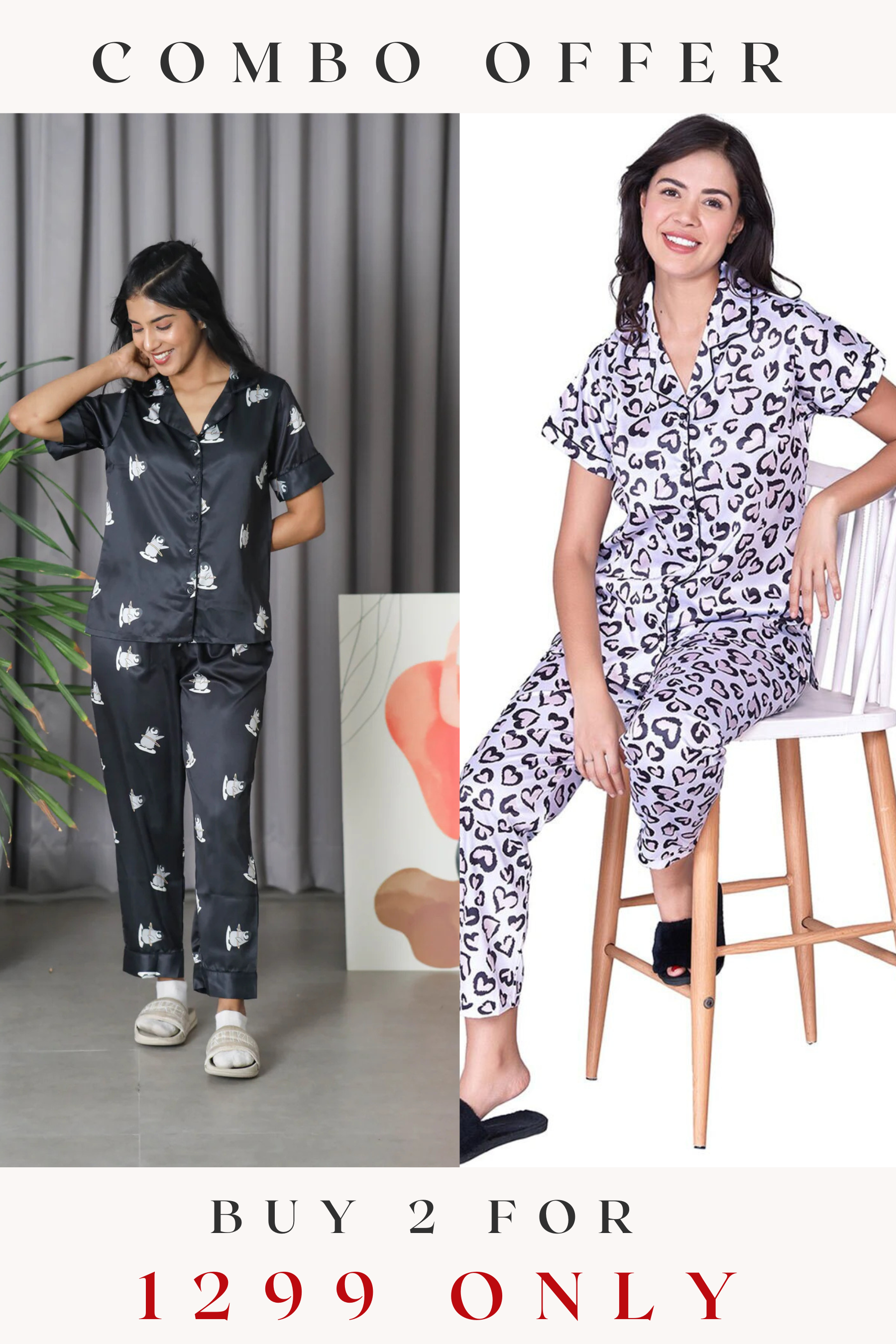 COMBO OF 2 Night Wear Satin Black cream Color suits